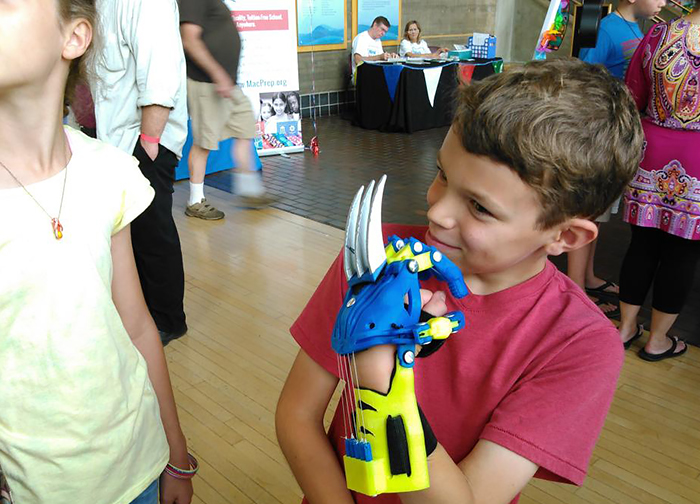The plans for the prosthetic hand that he printed were provided by E-Nabling The Future, which is formed by engineers, tinkerers, 3D-printing enthusiasts, physical therapists, designers, and anyone else who is interested in volunteering to help develop and create practical and low-cost prosthetic limbs for children. Other creative hands from the organization include an Iron Man hand and a light-up hand.