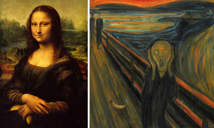 Besides creating cartoons I love photoshopping bananas into famous photographs, landmarks and paintings. Because everything looks better with a banana in it.