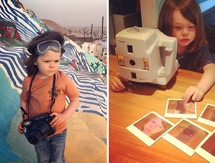 They climbed Salvation Mountain, went into the chutes at the Cody Night Rodeo, visited the markets of the Navajo Nation, and cruised the Las Vegas strip. Between the ages of four and five Hawkeye took nearly a thousand instant photos. The father-son duo shared their journey through these travel photography shots on an Instagram profile created for Hawkeye (@hawkeyehuey). That account now has over 125,000 followers; Hawkeye has been named to Rolling Stone’s top 100 Instagramers, and Time magazine’s 50 Instagram accounts to follow, and his stunning pictures have inspired online stories from National Geographic Proof to the Huffington Post. At age four, he became the youngest photographer ever represented by National Geographic.