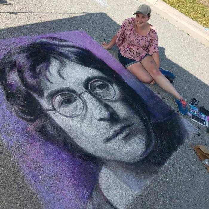 Final John Lennon Chalk Portrait with Artist Christie Snelson