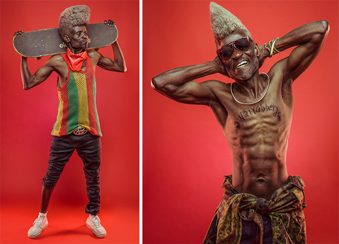 The men live in Kariobangi, an informal settlement in northern Nairobi, and they call themselves KABANGU. They’re “a group of real hip hop heads from the 80’s who meet up regularly to educate and mentor upcoming young talent venturing out into the hip hop industry,” writes Macharia on his website. The men teach youths about important values such as peace, prosperity, social justice and equality. “We’re using old guys who still rock the 90s and 80s hip hop look, But now in the modern day era,” says Macheria in the video below. “We want to… bring that old school…to a different generation.”