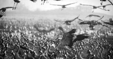 Gensheng’s photos of Shanghai that he took standing 2,000 feet (610 meters) above the city, show the otherworldly cityscape with multiple tower spikes and skyscraper tops bathing in the clouds. The conversation between the shoreless rows of buildings and the natural lighting variations brings up panorama, which is sometimes apocalyptically frightening, whereas other times – dreamy and hopeful.