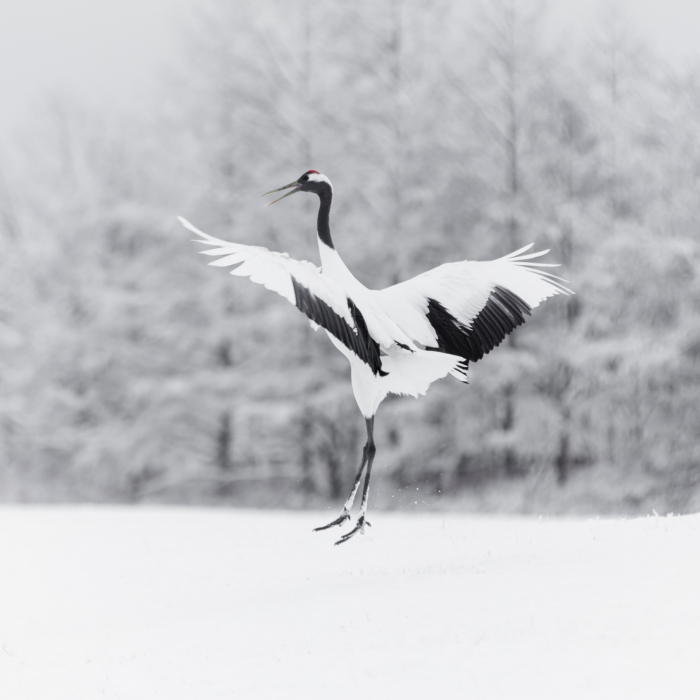 The Red-Crowned Cranes – called tanchozuru in Japanese – are deeply treasured in Japan. Quite literally the stuff of legends, the beautiful birds of all varieties has long been regarded as mythical as dragons, with their fabled 1,000-year lifespan making them synonymous with happiness and longevity. There is even an ancient Japanese legend that promises whoever folds 1,000 Japanese cranes with origami technique will be granted a wish.