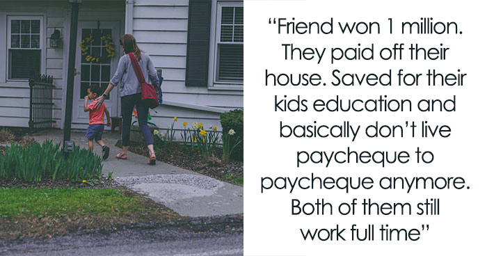 Friend won 1 million. They paid off their house. Saved for their kids education and basically don’t live paycheque to paycheque anymore. Both of them still work full time.