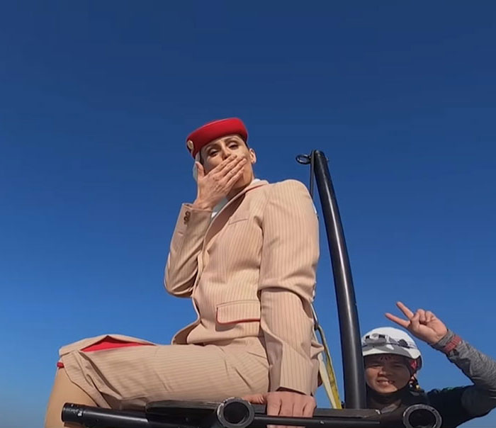 “It was so much fun wearing the Emirates uniform for the day. It’s gorgeous, isn’t it?! The hat and scarf were my favorite thing to wear. However, I am not an Emirates flight attendant. I am a professional skydiver!”
