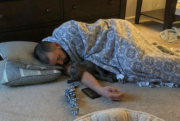 #4 Got A New Puppy And He Doesn’t Like Sleeping Alone. Came Downstairs To This