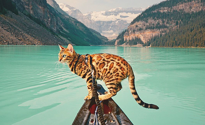 From a canoe ride to a blossoming meadow, each place becomes a lot brighter once this Bengal enters it. Scroll down to meet the daredevil kitty and vote for your favorite travel photos!