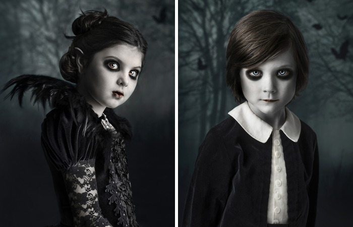 In photoshop I edited the pale skin, enhanced the eyes, changed the colour tones, liquified the ears. I just put dark make up around the eyes but did the skin-tone in post-prod, it would have been to hard for the 5-year olds to sit still during make up and then have energy left for the shoot. I did all the styling myself and spent hours and hours finding the right outfits