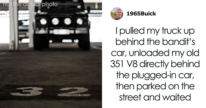 I pulled my truck up behind the bandit’s car, unloaded my old 351 V8 directly behind the plugged-in car, then parked on the street and waited.