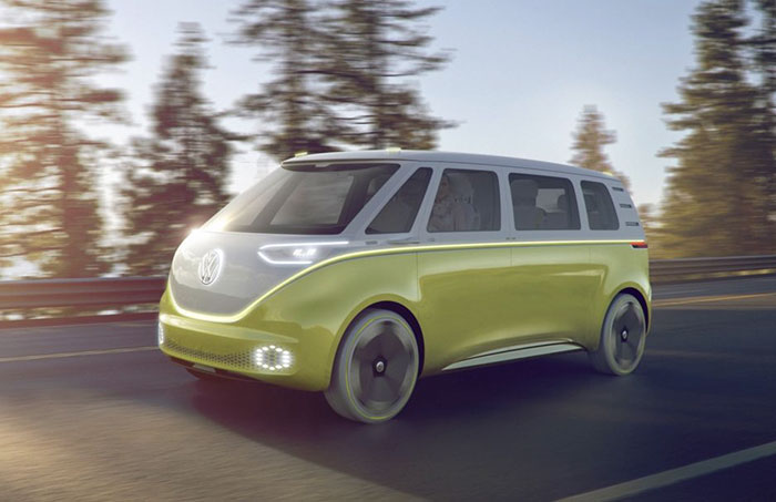 VW revealed a self-driving Microbus, called I.D Buzz, fueled by electricity and its hippie heritage