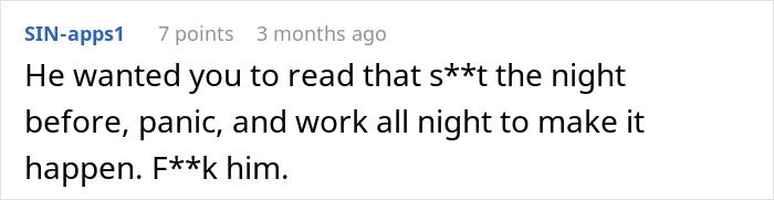 “Let’s start with unrealistic expectations,” Naresh tells Bored Panda. He recalls hearing about bosses who expect their employees to respond to clients at 2 a.m., even if it’s not an emergency. According to him, that’s a complete violation of boundaries. Employees are humans with lives, families, and the need for rest. It’s not fair or sustainable to demand 24/7 availability. While working overtime occasionally, especially when compensated, can be part of some jobs, making it the standard expectation is harmful. Naresh stresses that boundaries are crucial for long-term productivity.