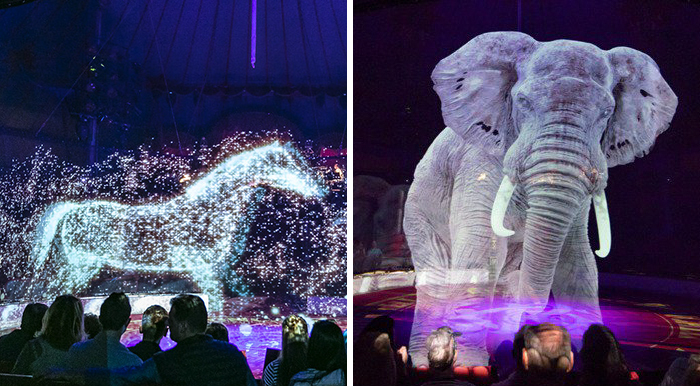 Its shows still feature tusks and tails, fiery circles and acrobats, but in a world’s first, not one of the circus animals are real. Roncalli wanted to create 3D images from hologram projectors while filling the arena measuring 32 meters (105 feet) wide and 5 meters (16 feet) deep with 360° visibility for the entire audience.