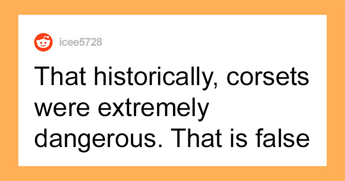 That historically, corsets were extremely dangerous. That is false. “Tightlacing”, which is basically just what’s seen in the movies, where they make the corset as tight as they can, was not very common, and only used in the extremely upper class. Most people wore corsets completely safely, lacing down very little, if at all. Women climbed mountains, biked, did sports, and everything, in corsets.