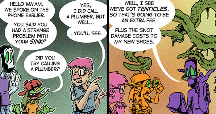 Sometimes, I would see something fantastic in an artist’s work. An image or an idea that I would like to try to incorporate into one of my comics. Only after speaking with the artist and asking for their permission would I begin the process, fully giving credit where credit is due.