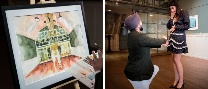 Years of imagination, led to months of planning, for this one in a lifetime moment. 3 events in 1 night – a surprise proposal, a solo art exhibition, and an engagement party. Everything was executed perfectly!