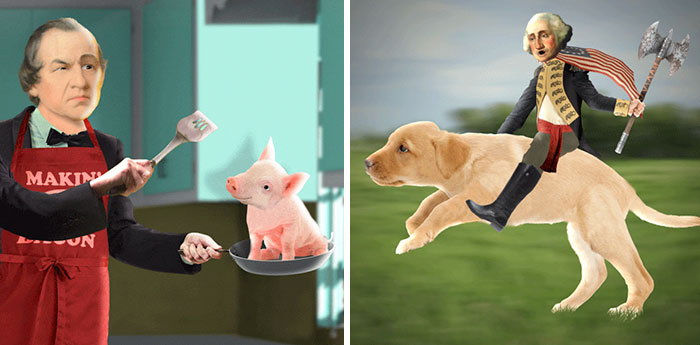 He kicked things off with George Washington on June 1st and hopes to finish up with Trump on July 15—assuming there’s no last minute addition. The daily creation of GIFs has been intense and perhaps has inspired the brilliant insanity of his recreations. How will it all end? We’ll have to stay tuned to find out.