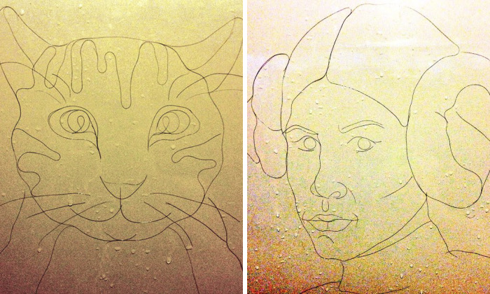 The self-proclaimed “Shower Hair Master” discovered that her wet hair made a unique, albeit bizarre art medium, three years ago, while showering. She gathered the hair that came off of her head while washing it, and spread it on the bathroom wall, as she usually did. She planned to throw it away after she was done, but this time she noticed that the strands made up a recognizable shape, so she started playing around with the mass of hair and ended up creating a squirrel.