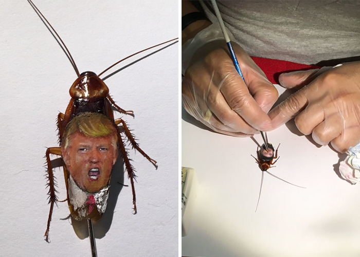 Donald Trump painted on a Real Cockroach