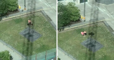 The 2-minute video currently has 2.4M views and shows a man operating a crane trolling a person sunbathing on the ground.