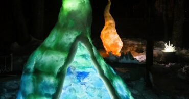 I decided to freeze some water with dye added, and stack myself a colorful igloo. The kids loved it! Then someone suggested I should light it up at night. Aft