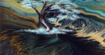 This is the last acrylic pour painting with PVA Glue as my pouring medium. I did a Split cup pour again and going for a Phantasy landscape look. And I got it!