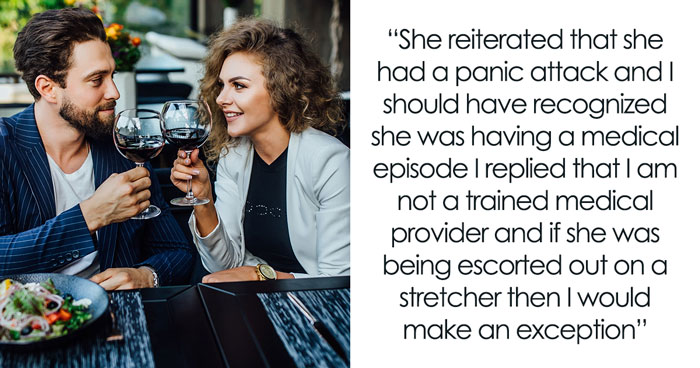 But the woman insisted she couldn’t eat due to her panic attack and refused to pay. OP apologized but explained that once food is cooked, customers are still responsible for the bill. He even offered to comp their drinks. The woman insisted that the restaurant should’ve recognized her medical episode, but OP held firm.