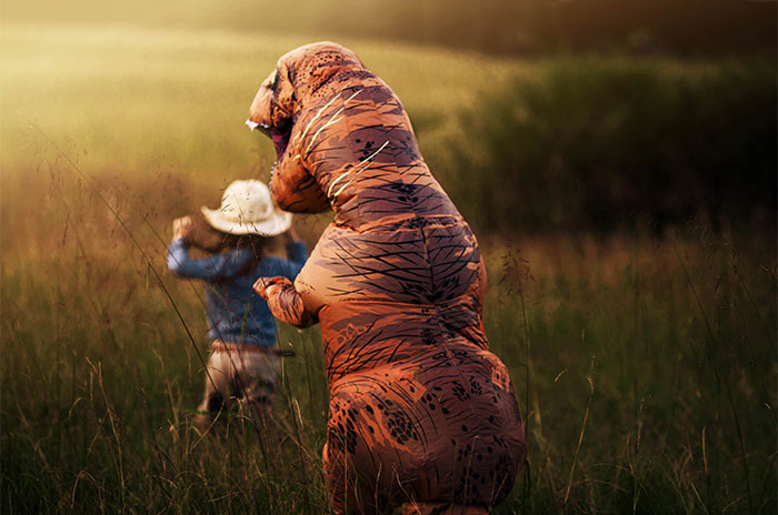 Scroll down below to see the brilliant photos of Levi the T-Rex and his sister Lola, that look like straight from a Jurrasic Park movie set!