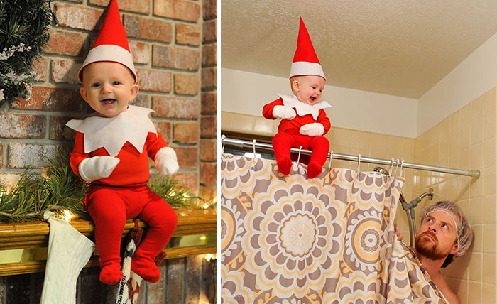Utah’s dad-of-six Alan Lawrence decided to take the famous Elf on the Shelf Christmas tradition to the next level by turning his own 4-month-old baby boy Rockwell into the cutest elf ever. He made up a whole story about his own little elf and started documenting his mischievous adventures on his That Dad Blog. Lawrence’s wife helped him by making Rockwell’s costume.