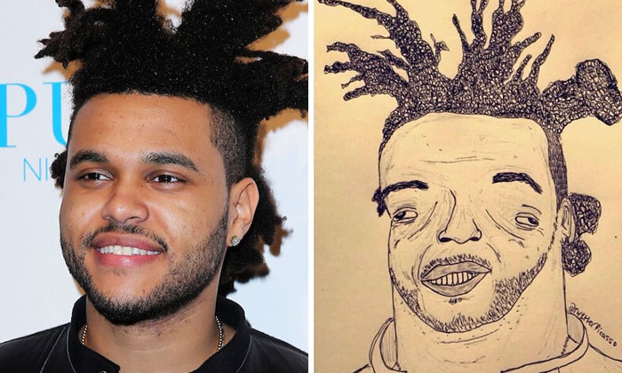 He creates ballpoint celebrity portraits and they are terrible. And the illustrations are so bad, they are actually good. The purposefully grotesque caricatures are full of small details inspired by the subjects’ tattoos, clothing, and body shape, offering a hilariously accurate take on some of the most famous people in the entertainment industry.