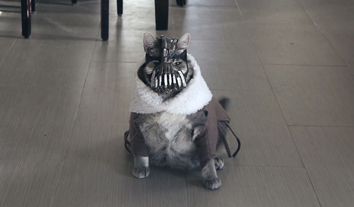 In one of the most bizarre character revivals we’ve recently seen, Bloodblitz, the comedian behind the Rob’s Rants channel on Youtube, has created a short video showing what Bane, the infamous Batman villain, might have looked like if he was a cat. Sporting the iconic mask and shearling coat, Banecat seeks to eliminate his owner’s control over him by terrible acts of vengeance – of the sort that regular cats seem to engage in every day anyway. (via)