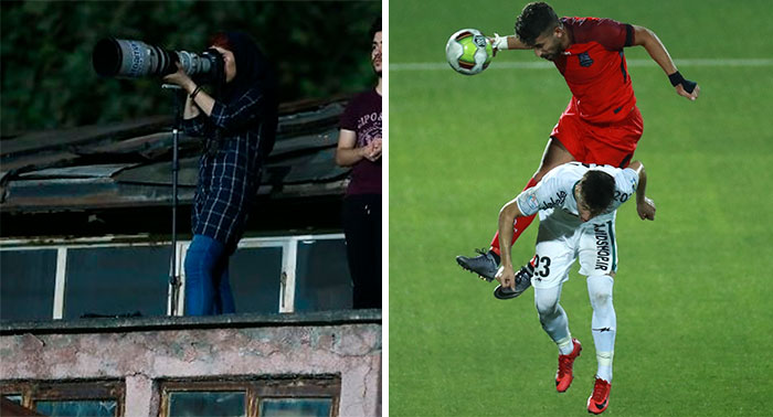 How did she do it? Parisa Pourtaherian loves sport, especially football, and has dreamed of covering a professional match. However, due to the stadium ban for women, in place since 1981 when it was decided that women should not be watching a game that men play wearing shorts, Parisa has been unable to join her male colleagues at stadiums around the country to photograph the action. But she has now decided to take matters into her own hands. Arriving at Vatani Stadium three hours before the game, she set out to ask owners of buildings nearby if she could set up on a roof to get a good vantage point. Eventually, after the match had already begun, she got permission at a suitable location. Armed with a huge telephoto lens, Parisa managed to capture quality images of the game, doing a professional job whilst neatly circumventing the controversial rules. She was noticed by male photographers in the stadium, and images of her dedication to her trade have gone viral first in Iran, and now worldwide.