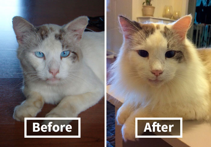 Below are some of the most inspirational and emotional photos of cats before and after adoption as shared on the tear-jerking r/BeforeNAfterAdoption subreddit. More happy endings of animals who were happily adopted can be found in our previous posts here, here and here.