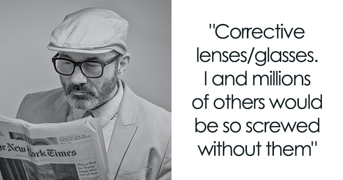 “Corrective lenses/glasses. I (and millions of others) would be so screwed without them.”