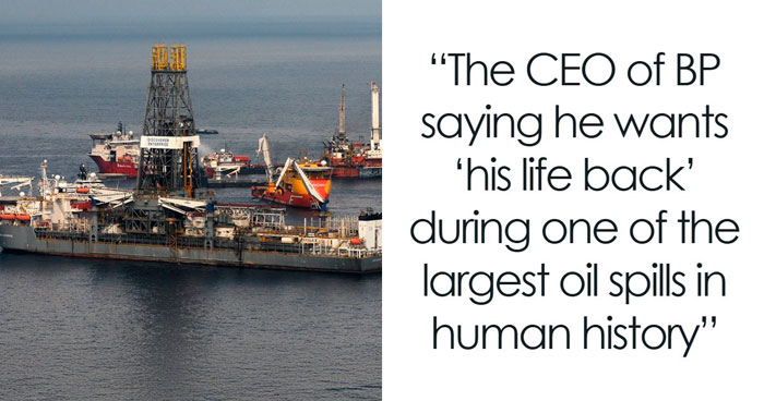 The CEO of BP saying he wants “his life back” during one of the largest oil spills in huma history.