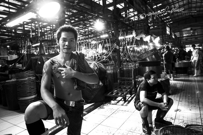 I want to talk about the people working here who are young aged from 18 to 35. They work in wet, noisy and dirty environments. They are the employees of the store owner. They are hired to do things such as stevedoring, transporting, sorting goods, and even selling goods to customers, all are the hard work for the young men here.