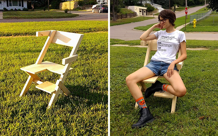 One father built a ‘Bi-Chair’ for his bisexual daughter because she found the stereotype that people like her can’t sit ‘normally’ to be hilarious. The chair was designed by artist Má Matiazi and built by Israel Walker, according to whom it is meant “for people who can’t sit straight.” The satirical project went viral, as the internet thought it was incredibly creative. Make sure to scroll down for Bored Panda’s wholesome in-depth interviews with the artist Matiazi and Walker!