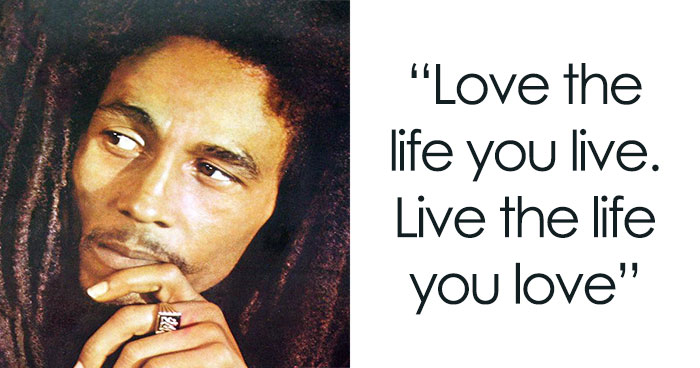 One very famous Bob Marley quote is “Love the life you live, live the life you love.” Even though there are no direct records of him saying this, his song Place of Peace does contain similar lyrics. No matter how or where exactly he shared this thought, it is a great piece of advice we can all use to live our best lives.