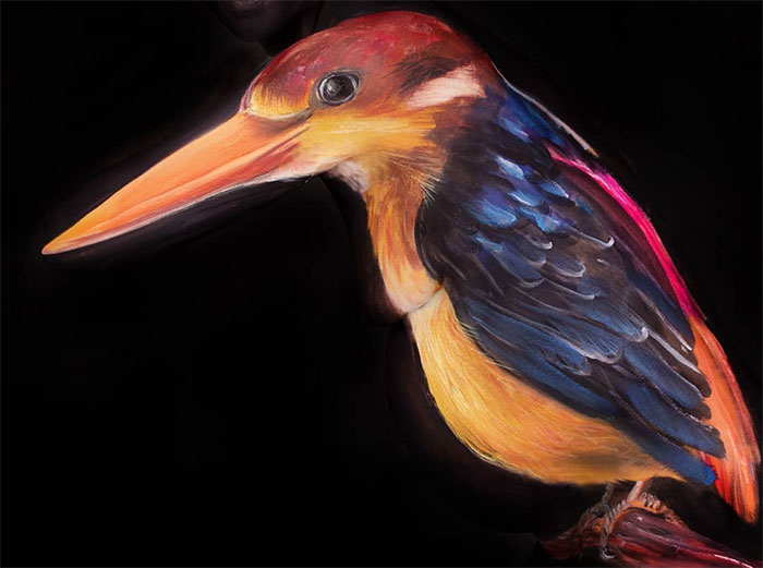 She has shared with us how it all started, and what she draws inspiration from: “I always painted on canvas and put some photos on the internet. A photographer (Thomas van de Wall) saw them and asked me to paint a face. That’s how it started. I am inspired by poses, by colors, by animals and nature… sometimes I just see something and an idea immediately comes into my mind.”
