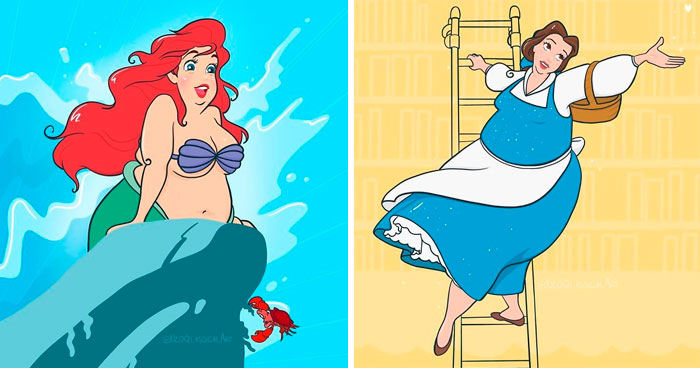 The illustrator said that her Disney project is all about positive representation. The lack of it inspired her to reimagine princesses and provide role models for people with different-sized bodies.
