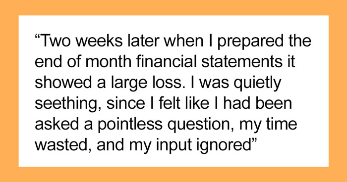 In the comments, the Redditor said that his input was actually quite valued and taken into consideration in the past when making very important decisions, so he resented his boss for a long time for not trusting him that time.