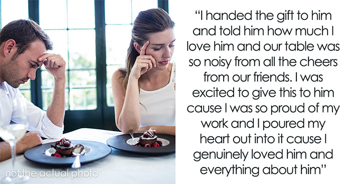 During lunch, OP’s boyfriend gifted her an expensive necklace she had been eyeing, and she gushed with love. Well, the poster also took out her present, a book about their love story that she had made from scratch. While her friends all cheered, her boyfriend suddenly flipped and started criticizing the book, leaving OP utterly shocked and humiliated.