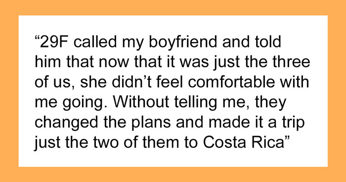 But when one friend backed out, the BF disinvited his own GF so he could go on vacation with his female best friend