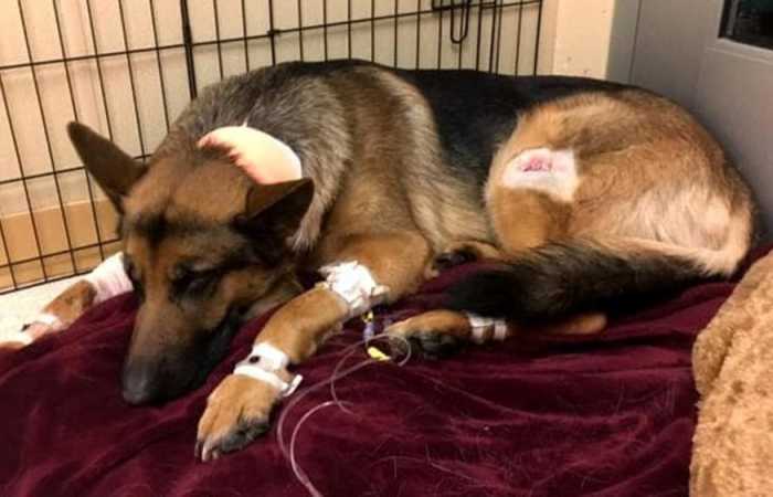 Sadly, they shot the dog four times and he gave up his battle