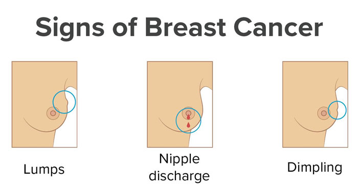 Medical News Today has a guide to 9 of the most common signs, including pictures of inverted nipples due to breast cancer. Their infogram blew up on social media and received several retweets.