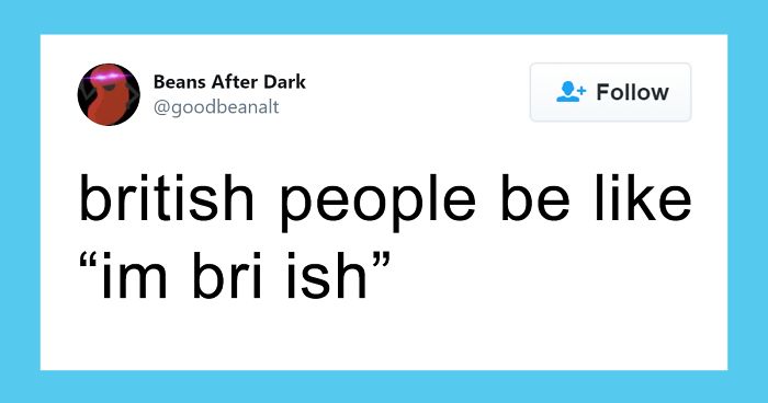 We’ve collected some of the most hilarious times that Twitter users have poked fun at people who speak British English (or Bri-ish as one Twitter user who created a viral thread with over 663k likes joked). Upvote the best tweets and let us know in the comments what you think of the way British people speak. Personally, I absolutely adore the variety of accents in the UK, but to each their own.