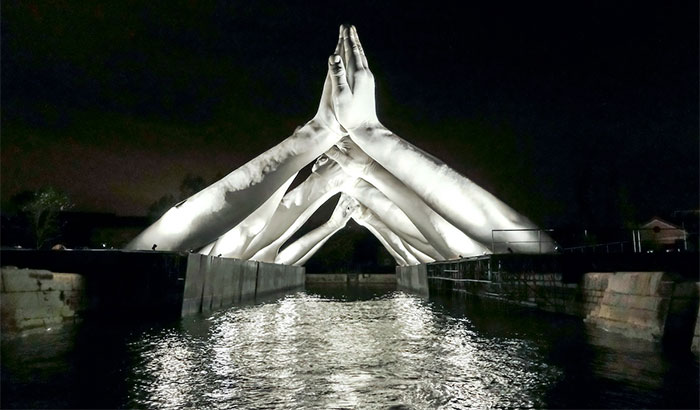 Following up on his monumental sculpture for the 2017 Venice Biennale, Support, artist Lorenzo Quinn has returned to the city with yet another phenomenal work. This time, Lorenzo built six pairs of hands joining over the historic Arsenale. At almost 50 feet (15m) high and 65 feet (20m) wide, Building Bridges is a piece that celebrates unity and is a stunning addition to the city as it hosts the 58th Venice Biennale.