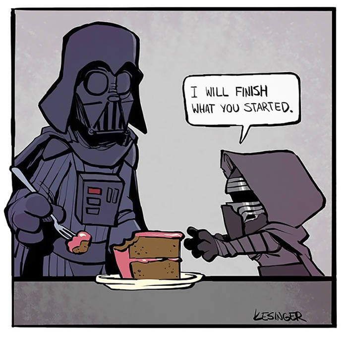 “I’m not the first to mash-up Calvin & Hobbes with pop culture,” the artist who has worked on Wreck-It Ralph, Tangled, and Tarzan said. “[but] I think the difference here is that I went a little deeper with the idea. Once I really made the comparison that Kylo Ren was probably a difficult child much like Calvin, it really resonated with people. The metaphor was solidified when I made Darth Vader Kylo’s imaginary friend.”