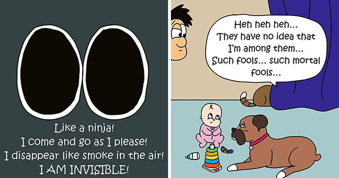 Any cat owners out there? Today, we’re excited to share more of Nick Filippou’s work. This artist is known for his relatable comics that capture the everyday reality of living with a cat. While the author’s cat Minnie is undeniably his biggest muse, some of his new strips also feature additional characters – a dog and even a baby! As you can imagine, having this wonderful trio around must be truly inspiring and, at times, quite challenging.
