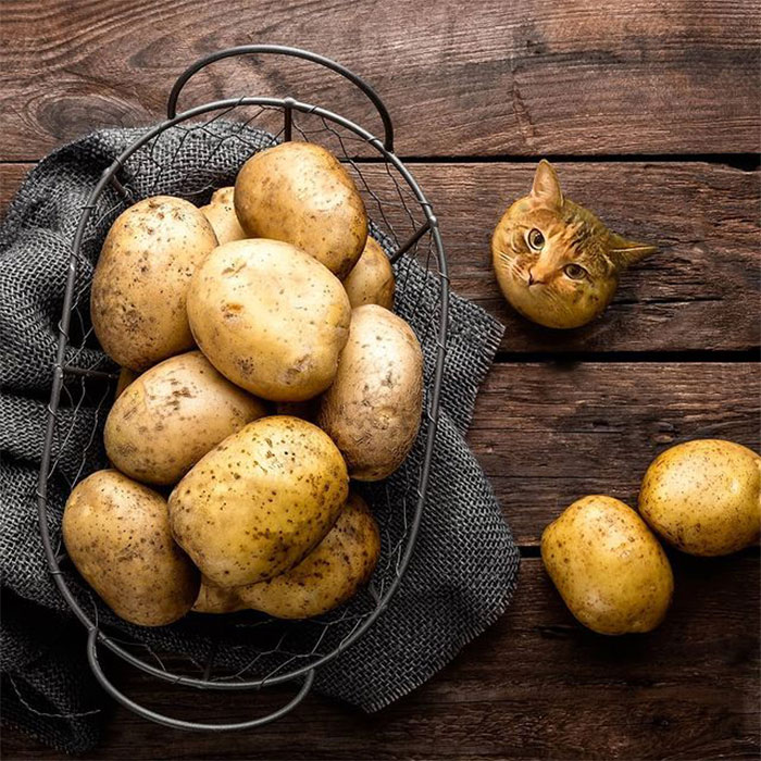 Are you a huge cat lover and would want to be surrounded by them at all times? Well, you’re not the only one! Galina Bugaevskaya is a big fan of cats and her Instagram koty_vezde (“Cats are Everywhere”) can prove it. She is an artist from Moscow, Russia, and is photoshopping cat faces on anything you can think of: giraffes, fish, pandas, even edible things like potatoes, buns, and bananas. Sounds like an interesting, yet funny dream, right?