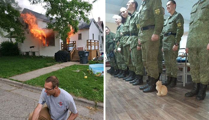 #27 This Man Saved Our Dog. You Can See Our Cat Jumping Out The Window